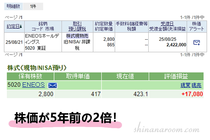 さて、今年売却すると言っていた旧NISAの銘柄、それはENEOSの株でした。